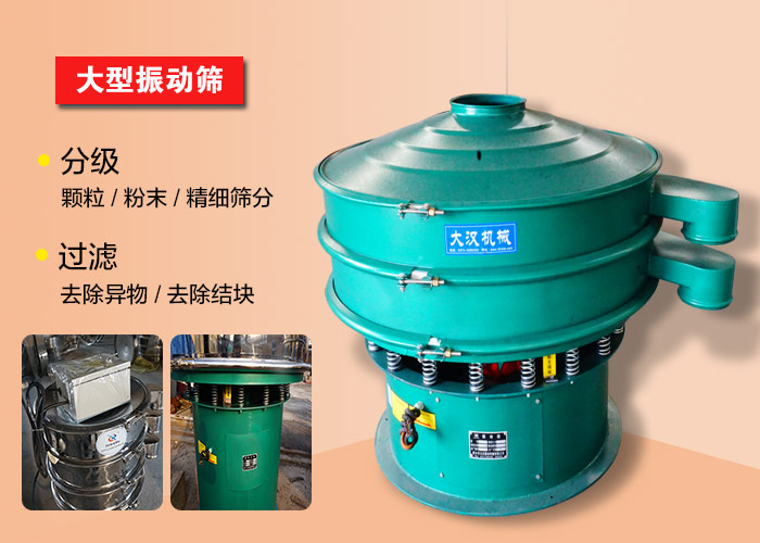 化工振动筛是大汉机械根据旋振筛的使用产量进行设计制造的产品,生产产量非常大,单位小时可以筛分3000kg/h,筛底效率非常高,在工厂的大型加工中广泛使用。